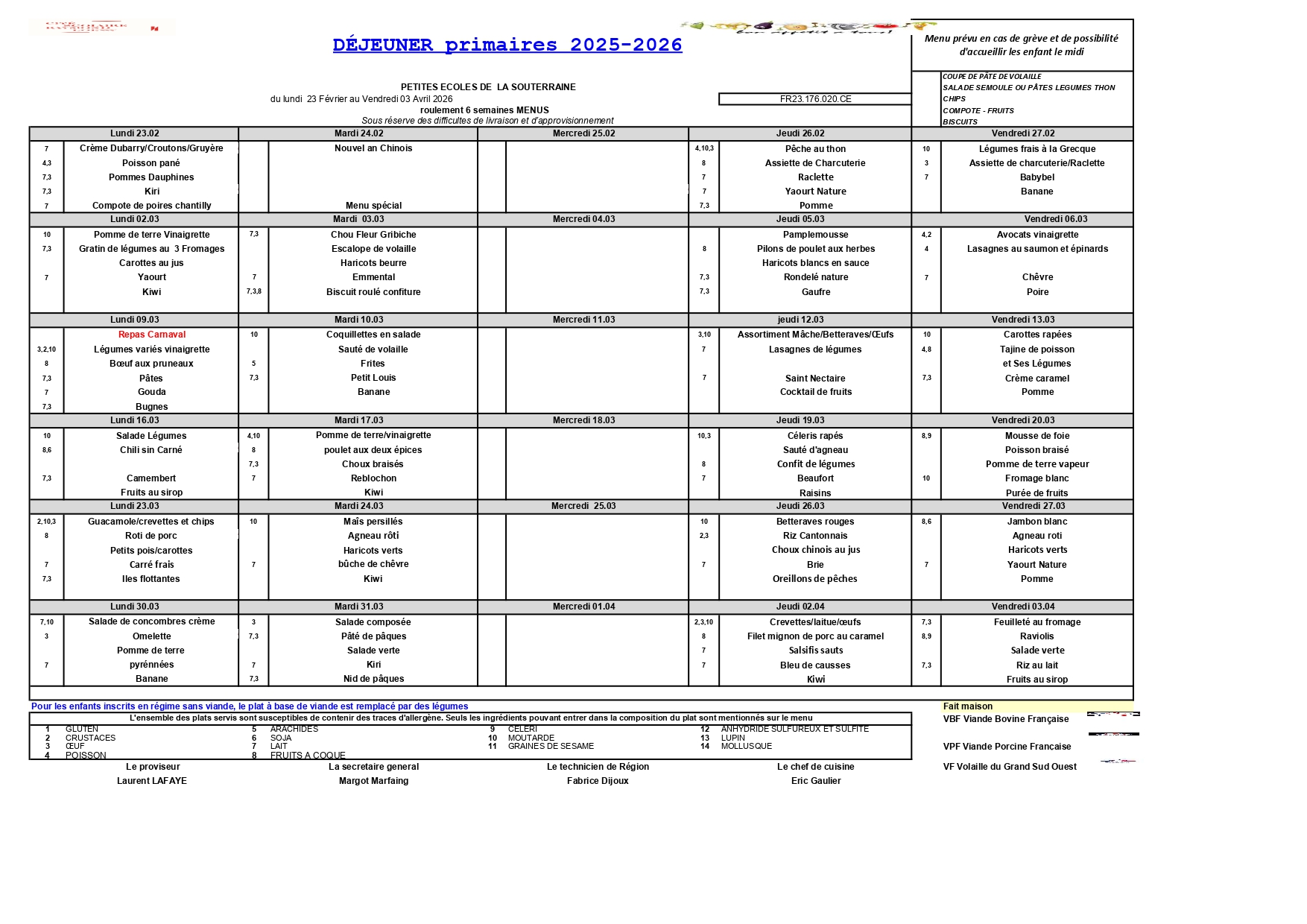 Pour toutes questions, contactez le service affaires scolaires : affairesscolaires@la-souterraine.fr
